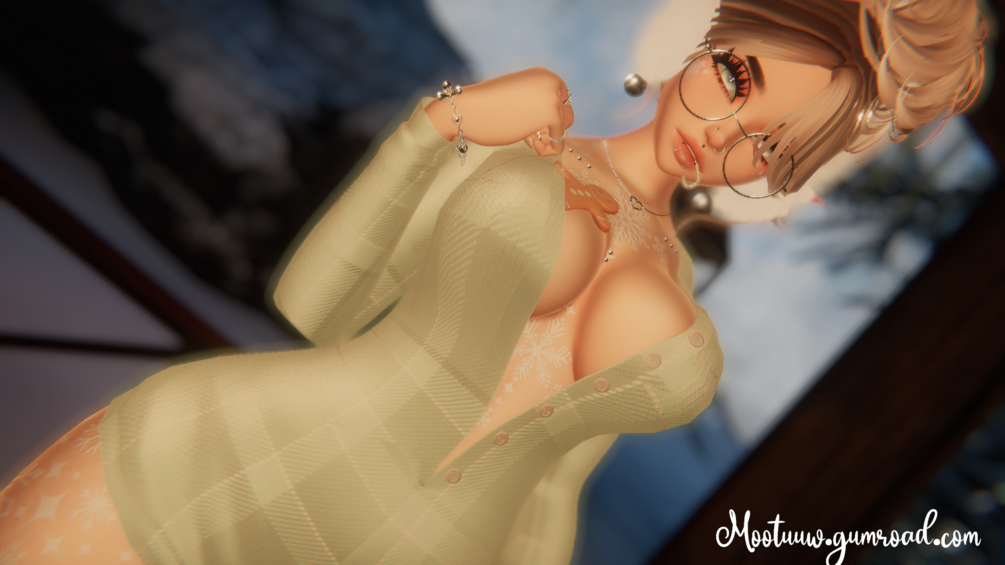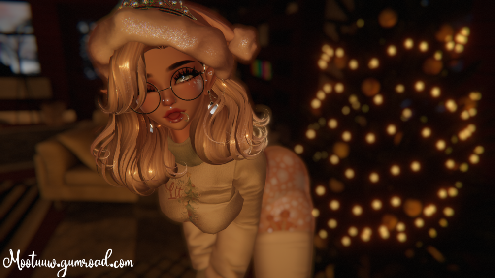 Body Panda Base: NOT FOR REUSE pandaabear│Head: NOT FOR REUSE sivka│Eyelashes sivka│Hair 1 nessy│Hair 2 nessy │Santa Baby, Santa Hat, Santa Poof nessy│Sweater, Cookies, Moccasins lolo│Jumper nessy│Boots wetcat│Arm/Leg Warmers meowmi│Glasses nauuki│Candy Cane prem│Toe Rings nauuki│Necklace doggystyle & beaniebaby│Rings doggystyle & honeylabs & hayweee│Belly Ring hayweee & alexis70│Tiara imlexz│Face Texture yingyang & miing│Body Texture yingyang│Body Tattoo maddiiee│Eye Texture fair│GoGo Loco│VRCFury│Poiyomi Shaders